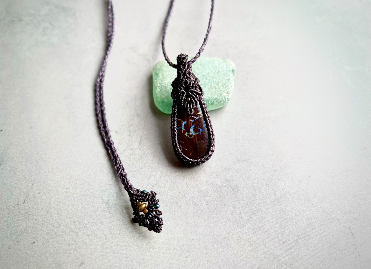 細長いドロップ型のボルダーオパールをペンダントにしました。