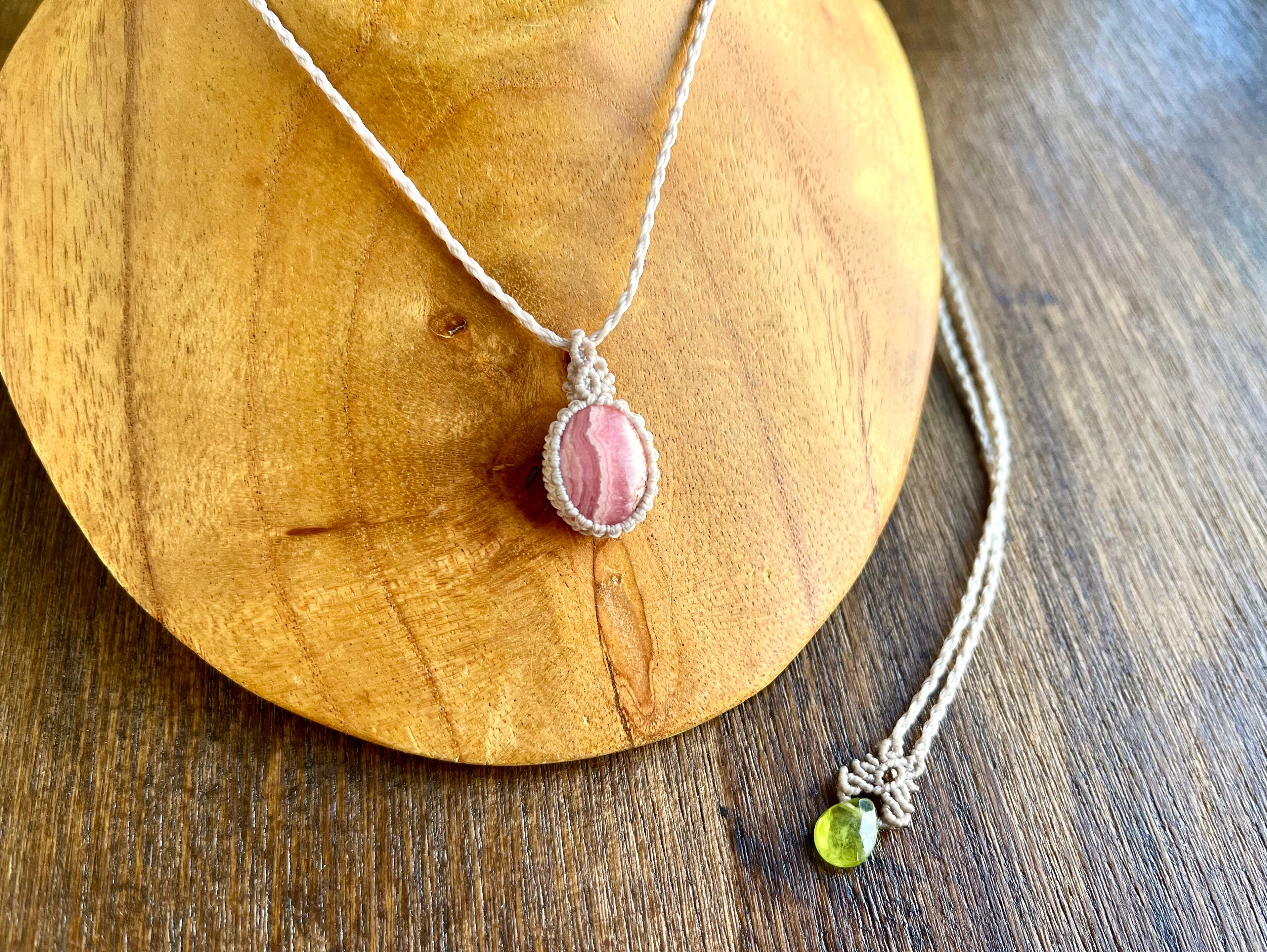 縞の美しいインカローズをシンプルなデザインで編んだペンダントです。