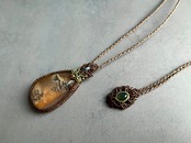 水晶の中に絵と見間違うほどはっきりしたデンドリック状の模様と内包物が浮かぶカボションはかなりボリュームもあり、胸元で存在感を感じさせます。