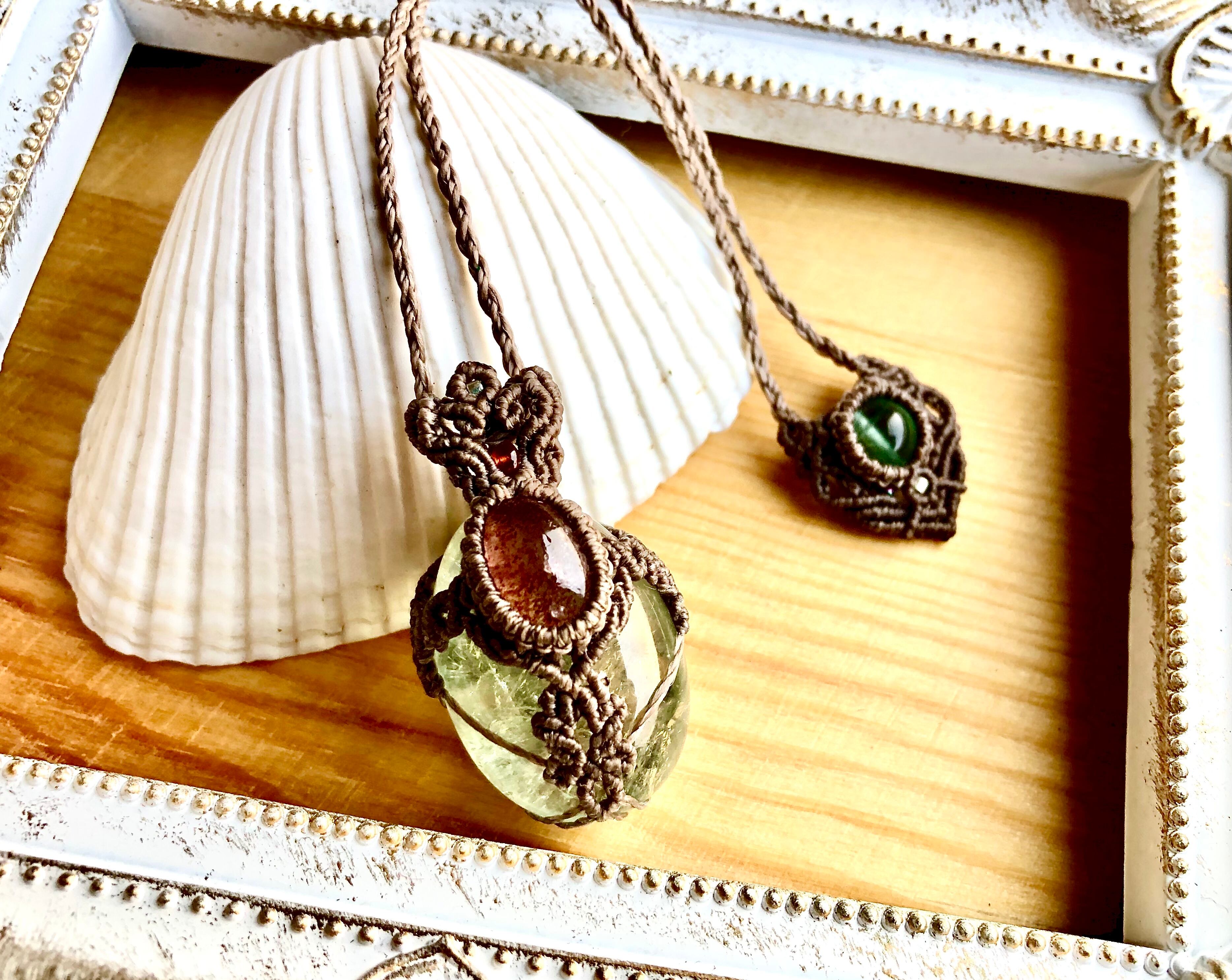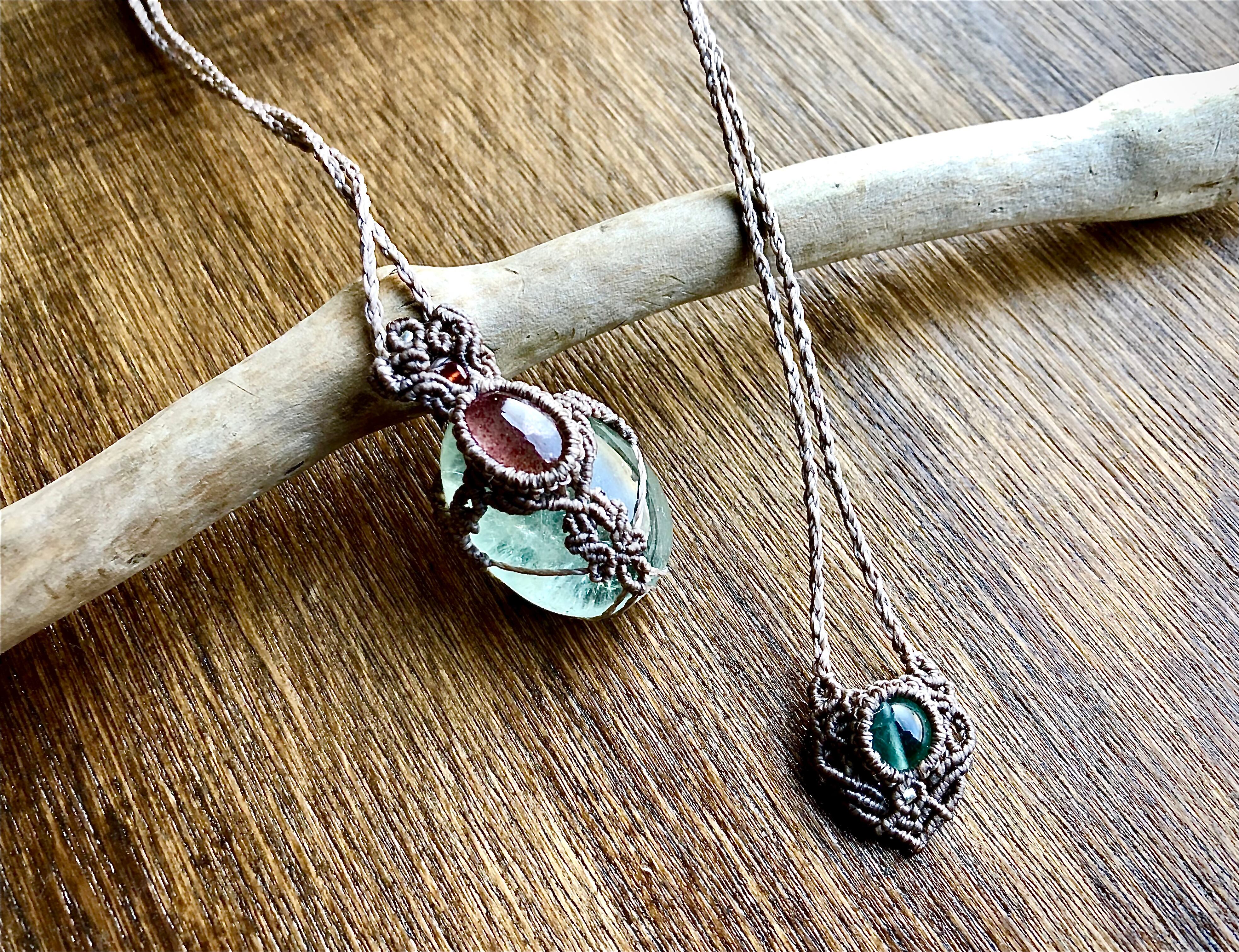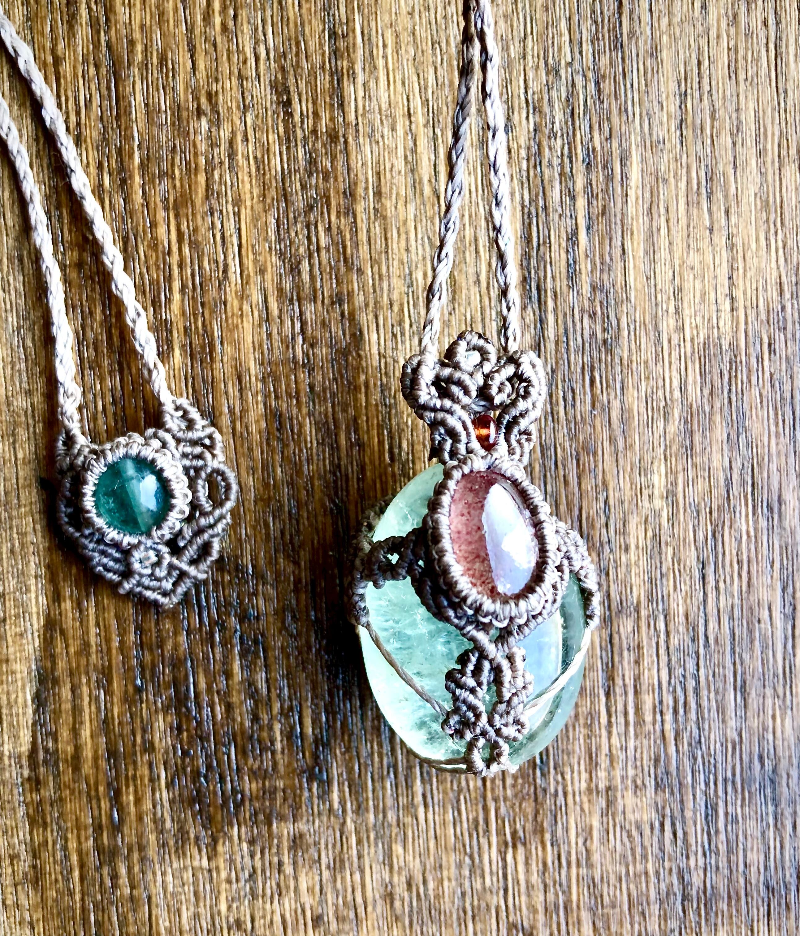 グリーンアメジストとストロベリークォーツのペンダント