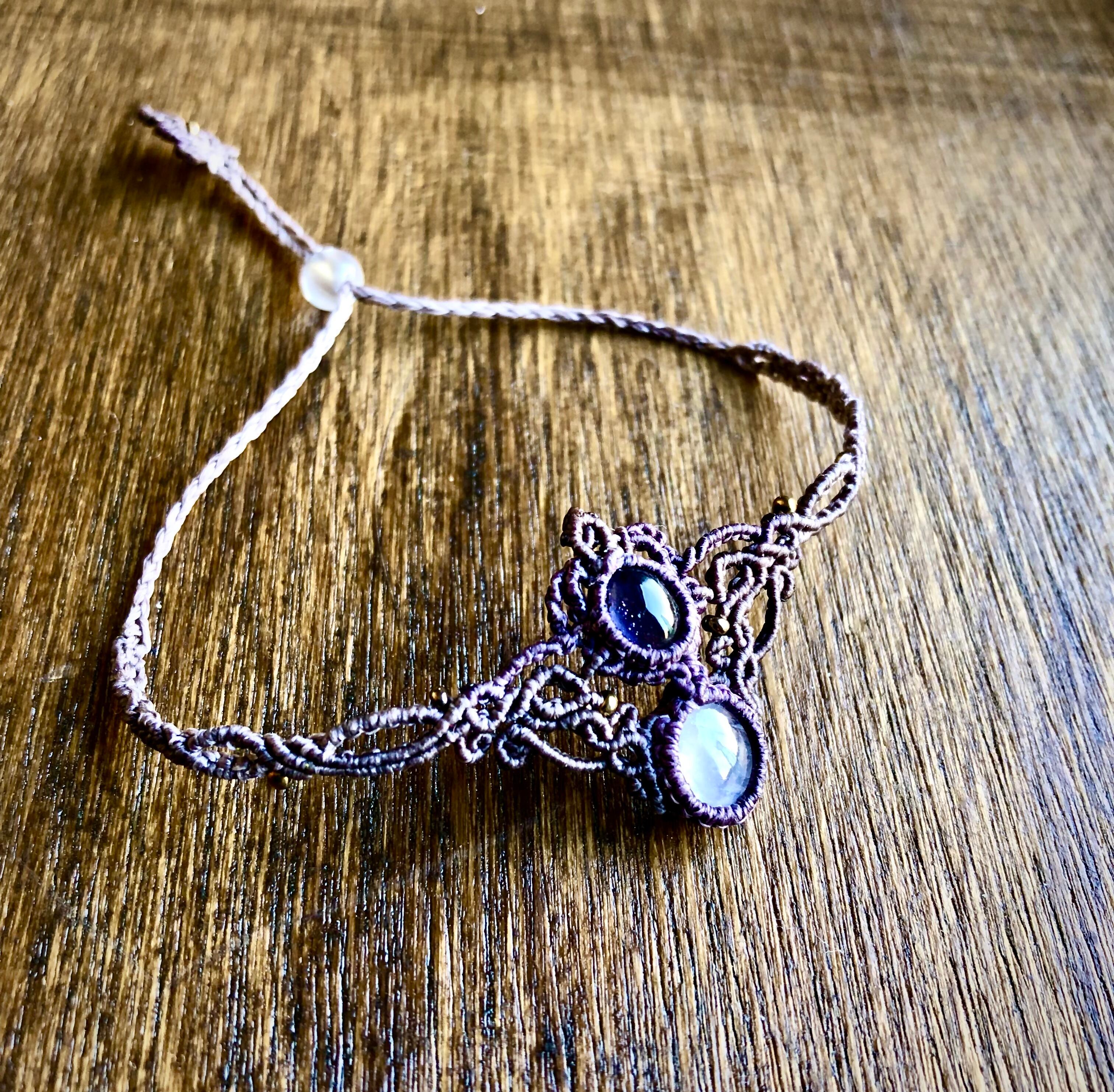 タンザナイトとホワイトラブラドライトのマクラメブレスレット