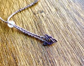 小ぶりなタンザナイトとホワイトラブラドライトを繋げてエキゾチックな印象のブレスレットに編みました。