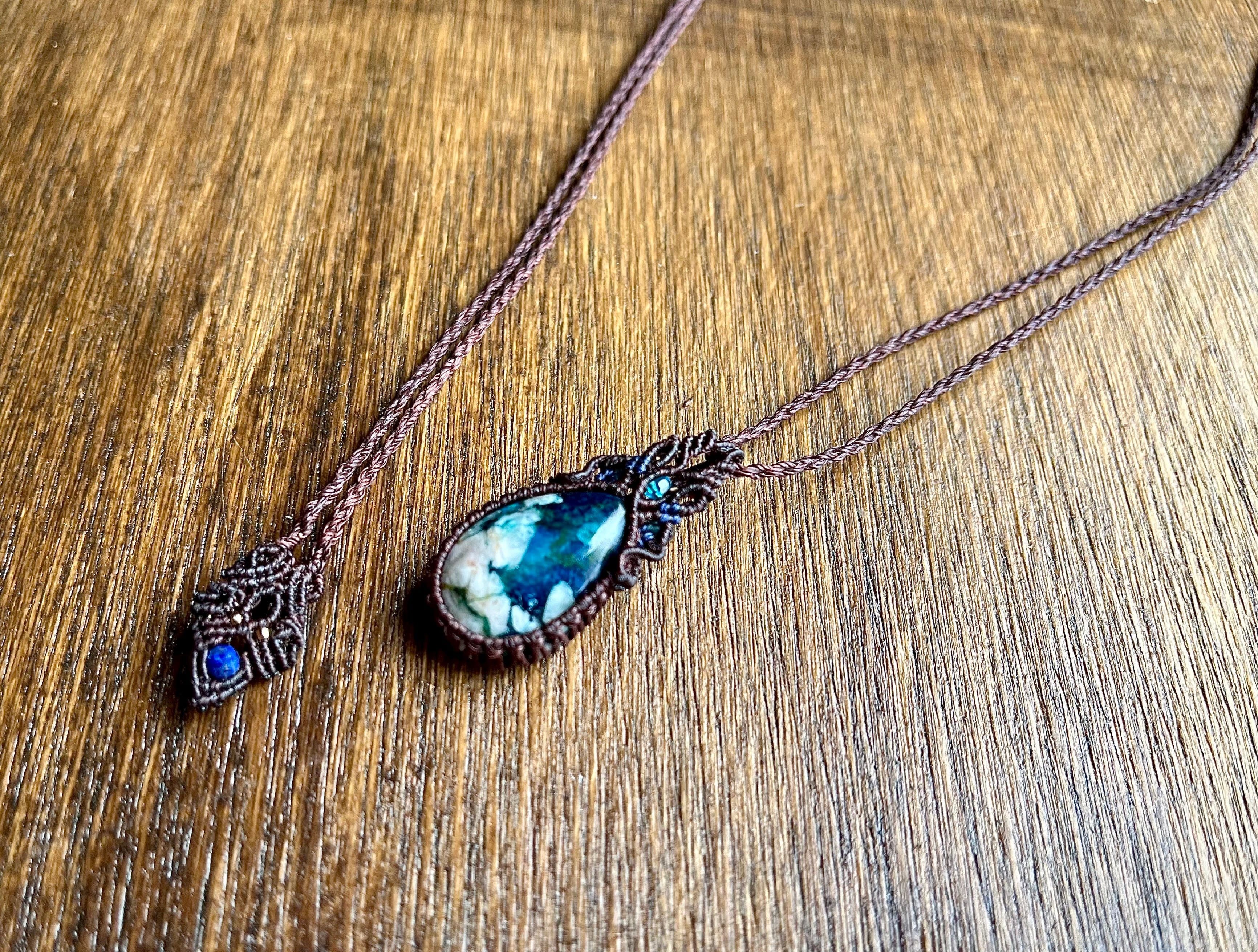鮮やかな青の中に泡のような斑が入った美しい模様のクリソコラです。