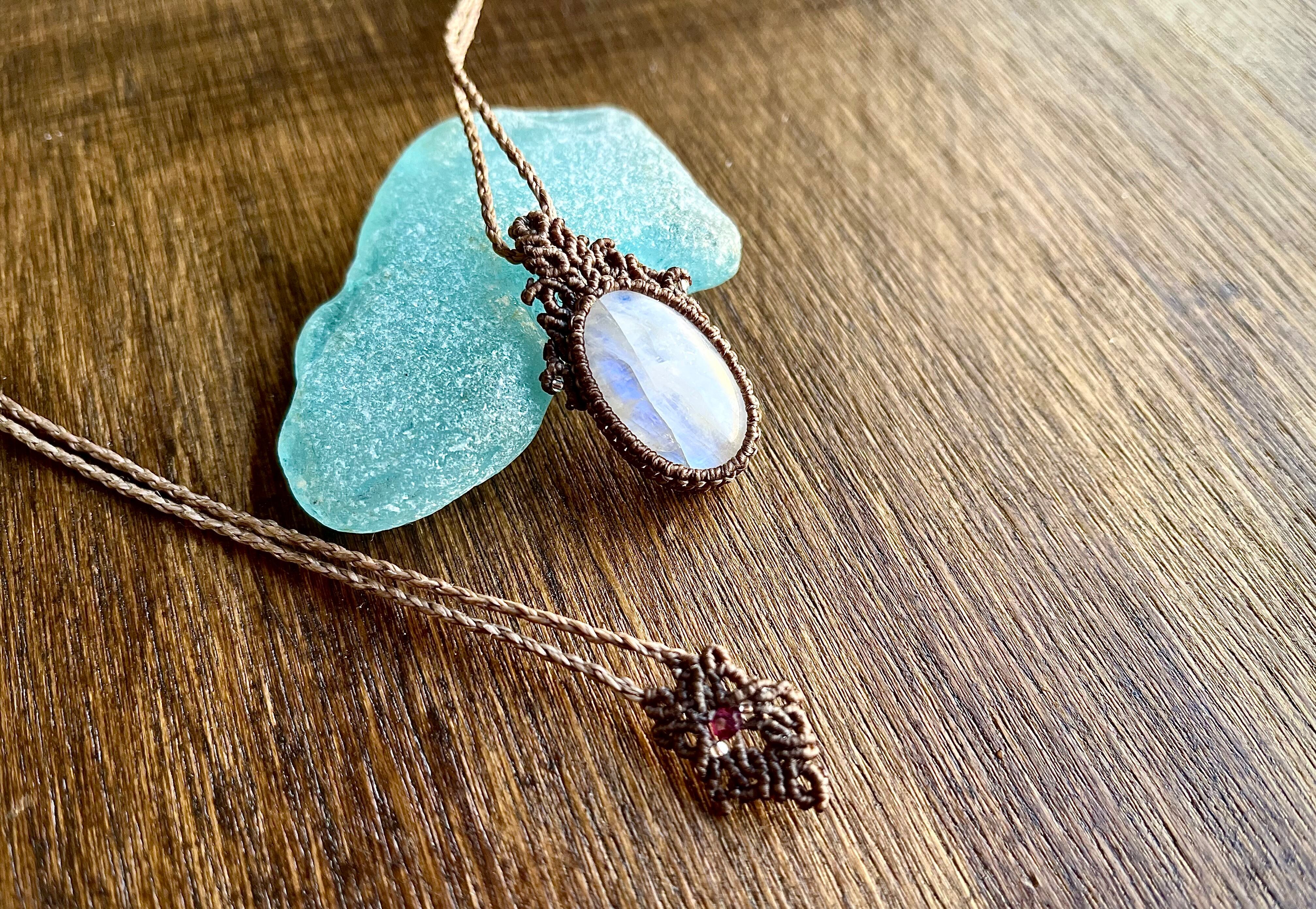 マクラメコードで編んだアジャスターでお好きな長さでつけていただけます。